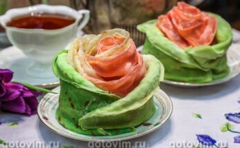 Блинный торт «Роза» с заварным кремом. Рецепт с фото