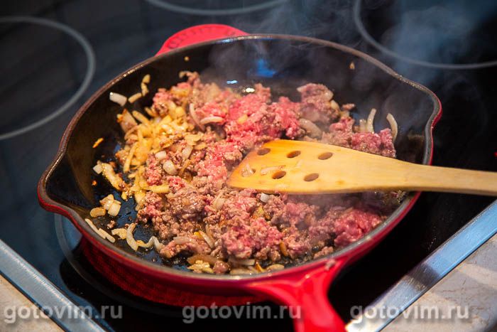 - мясной фарш (смесь говядины и свинины) — около 400г