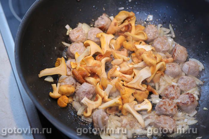 Положить грибы, прикрыть крышкой, чтобы они дали сок, а затем быстро обжарить до готовности грибов.