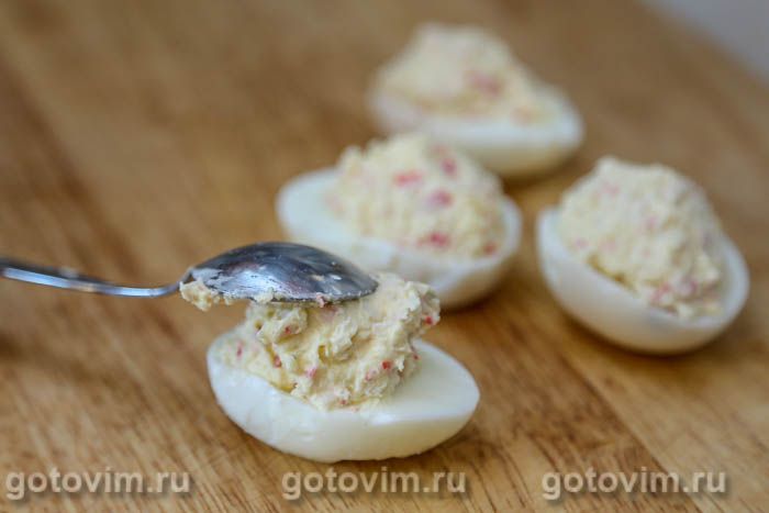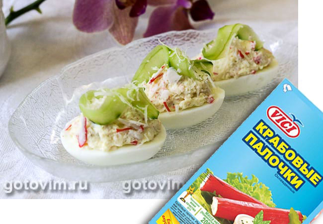 Фаршированные яйца можно приготовить с разными наполнителями. Сегодня для начинки смешаем крабовые палочки VIČI, сыр, измельченный чеснок и немного майонеза. Всё! Рецепт понравится тем, кто любит вкусно поесть, но не хочет тратить на готовку много времени и сил.