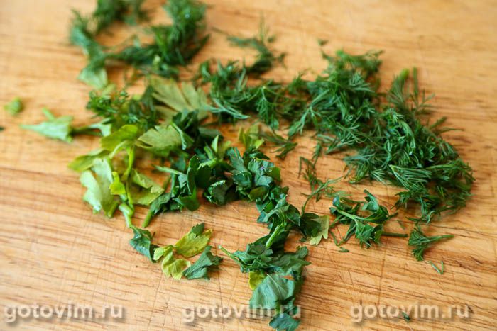 Свежую зелень вымыть и обсушить на бумажных полотенцах.