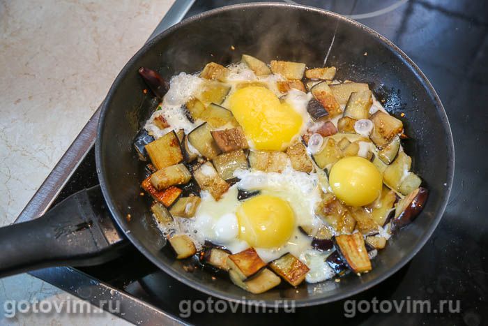 Сезонные овощи, такие как баклажаны, подойдут не только для обеда, но и для завтрака. Как вы смотрите на яичницу глазунью с жареными баклажанами? Никаких сложностей в приготовлении нет. Надо только подготовить баклажаны так, как описано в рецепте, чтобы они успели прожариться, подрумяниться и впитали минимум масла.