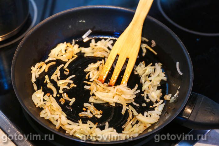 Перемешать и слегка обжарить вместе с луком.