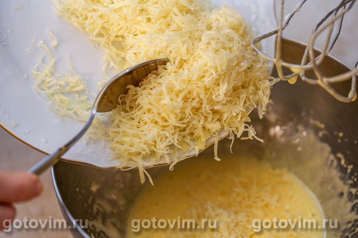 Сыр натереть на мелкой терке и смешать с желтками.