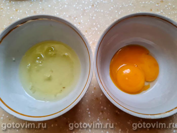 У яиц отделить желтки от белков.