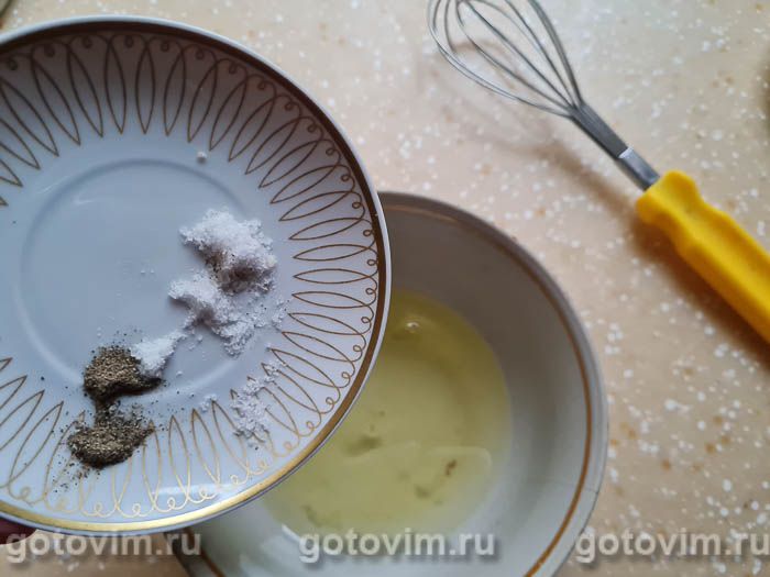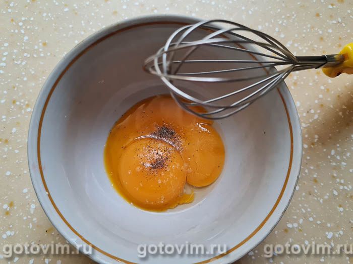 По отдельности размешать венчиком желтки и белки с солью и молотым черным перцем.