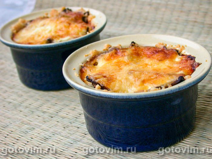 Разложить почки по формочкам для запекания (в кокотницы), залить сметаной. Сверху обильно посыпать сыром. Запекать в нагретой до 180С духовке до появления румяной корочки. Жюльен подавать горячим в формочках. Есть с аппетитом.