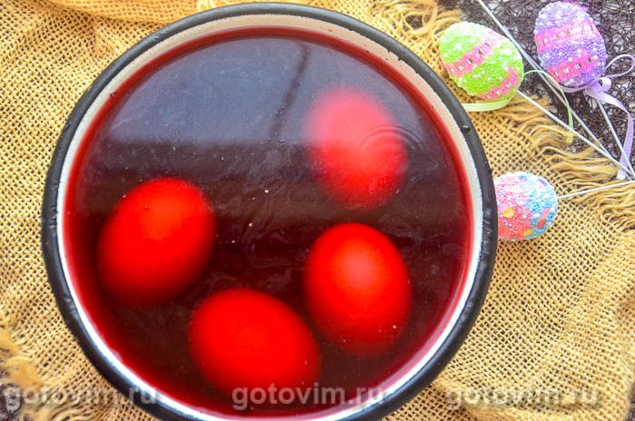 А вы знаете способ окрашивания пасхальных яиц, кроме вываривания их в луковой шелухе? Между прочим, можно использовать множество натуральных красящих средств. К примеру, листья шпината, свеклу, чай каркаде, молотую куркуму, краснокочанную капусту, ягоды черники. Нужно иметь в виду, что оттенок не получится ярким, но все равно светло-голубые яйца выглядят красиво.