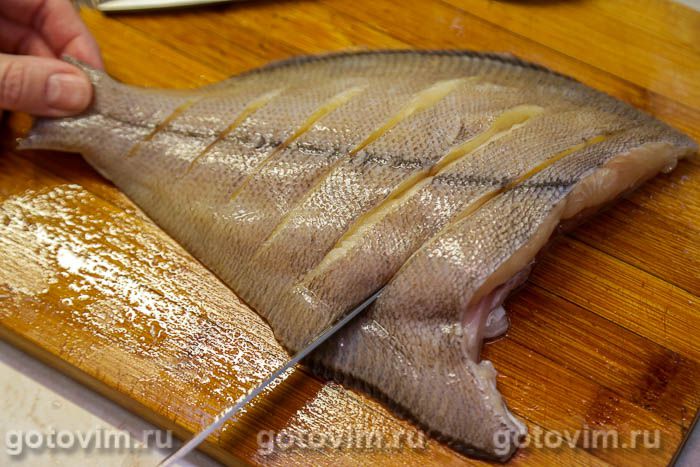На него уложить камбалу