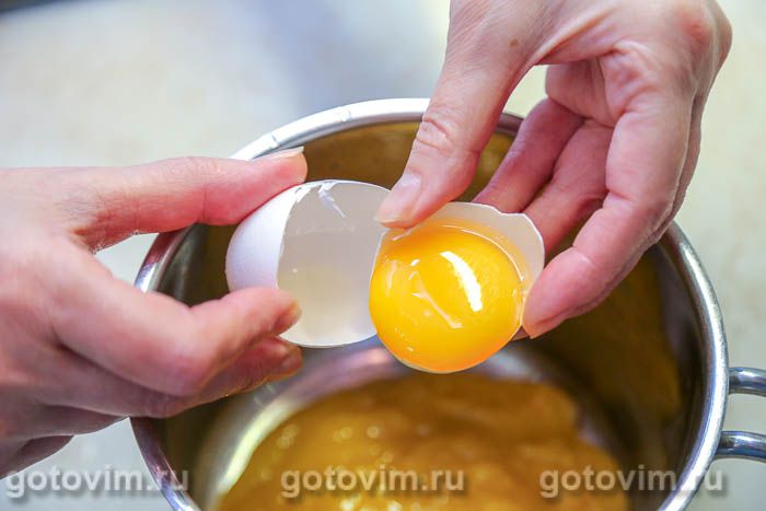 Перелить получившееся манговое пюре в небольшой ковш с толстым дном. Добавить к манго яичные желтки, щепотку соли