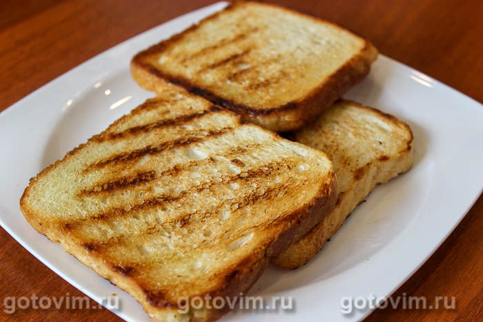 Для подачи на другой сковороде или в духовке подсушить ломтики хлеба.