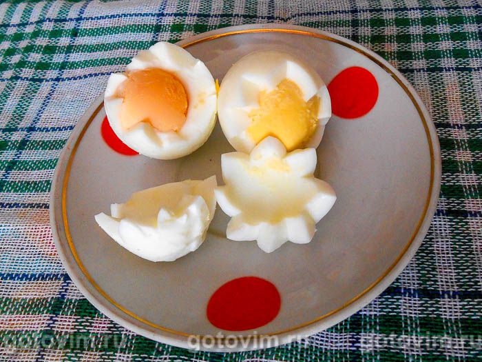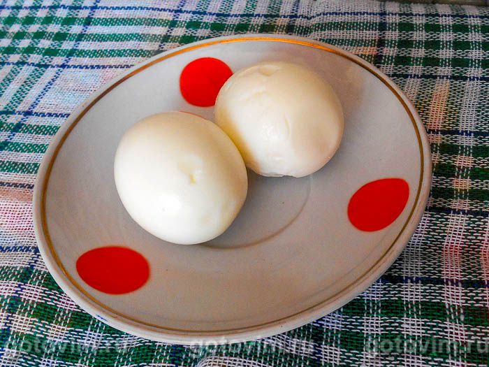 Яйца вымыть, залить водой, довести до кипения воду и варить в течение 10 минут после того, как вода закипит. Остудить яйца в холодной воде.