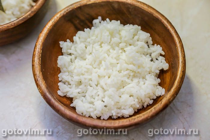 Поставить кастрюлю с рисом на средний огонь и как только вода закипит, убавить огонь до минимального, накрыть крышкой и варить рис 12 минут. После убрать крышку, дать вареному рису постоять ещё 10 минут.