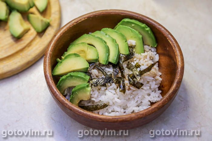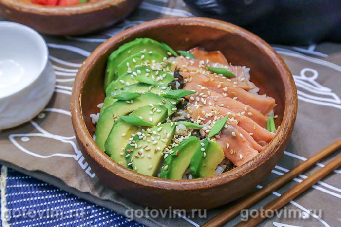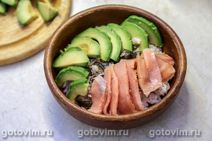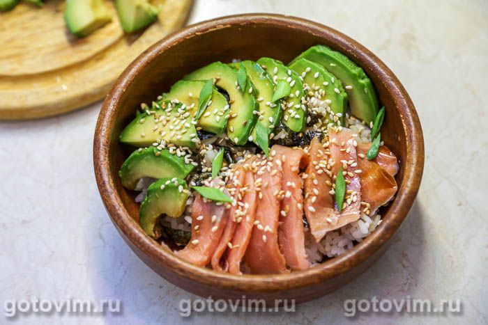 Поке — это блюдо-конструктор, состоящее сразу из целого списка ингредиентов. Обычно сюда входит рис, киноа, булгур или другая крупа, рыба (сырая!), морепродукты, овощи, фрукты, водоросли и соус. Со временем рецептура поке менялась, подстраиваясь под вкусы жителей разных стран. И теперь смело можно взять вместо свежего лосося малосольную или подкопченную рыбу по своему вкусу. Блюдо стали называть поке-боул, т.к. для подачи выбирают глубокую круглую плошку. Этот рецепт поке из красной рыбы с авокадо и соусом, наверное, самый простой, но вкус блюда отличный. Из перечисленных в рецепте продуктов получается 2-3 порции.