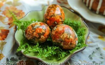Мраморные яйца в луковой шелухе и чае каркаде. Рецепт с фото